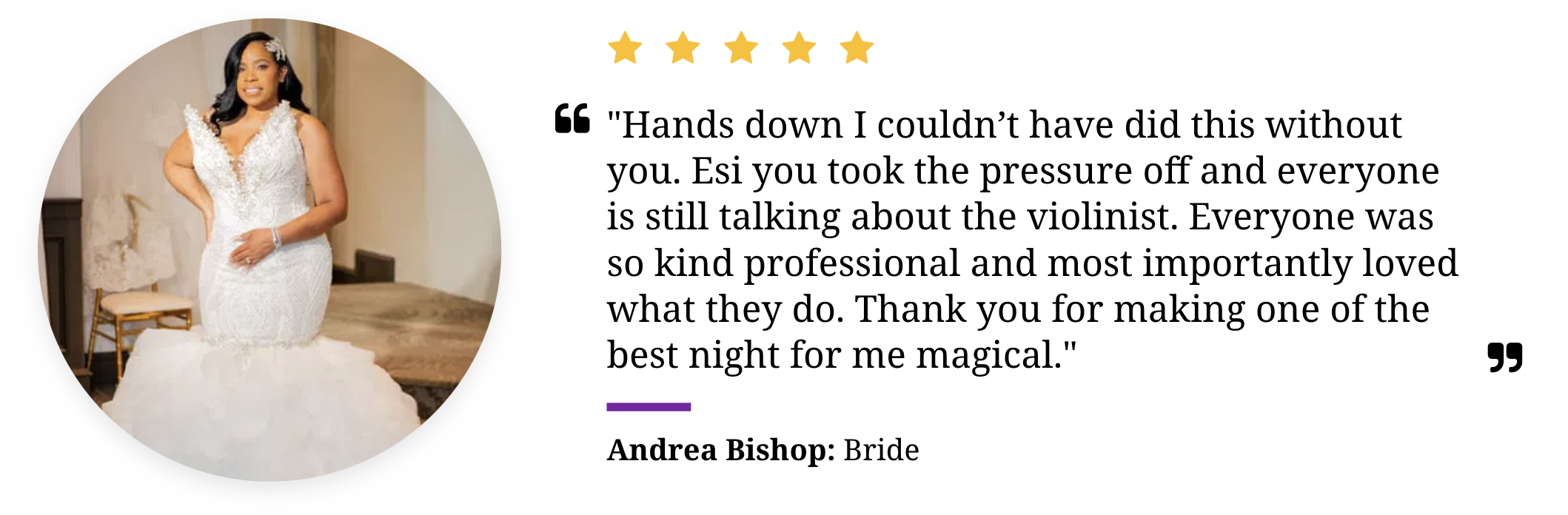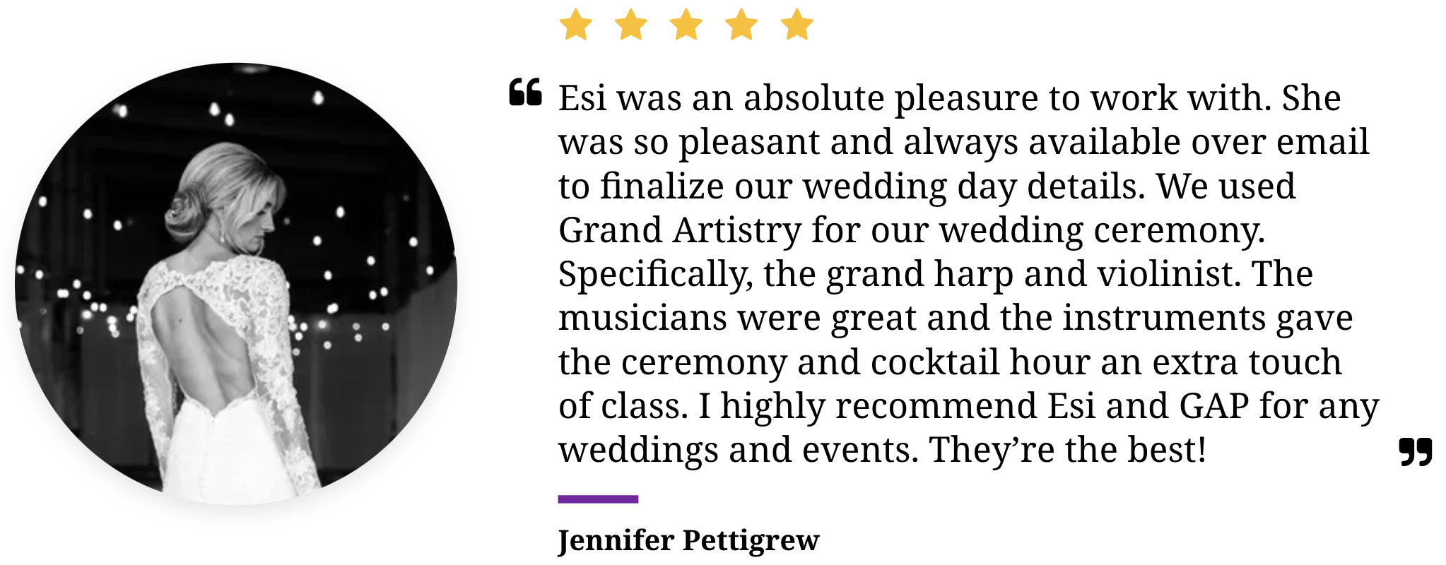 Musical, visual, and aromatic entertainment for a luxurious experience. The guests love taking videos and pictures next to the floral performances to capture unique wedding moments. Did we mention the wardrobe flowers are fragrant too? We understand the power of multi-sensory experiences and your guests will too. CLICK HERE to view the full list of musical performances.
