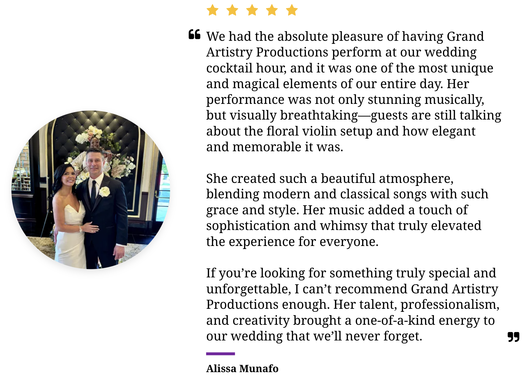 These offerings are just the beginning—an inspiring glimpse into what’s possible. At Grand Artistry Productions, we specialize in curating unforgettable event entertainment experiences. CONTACT US to share your wedding colors, theme, culture, and vision, and we’ll design a customized entertainment program that transforms your wedding into a spectacular, one-of-a-kind celebration.